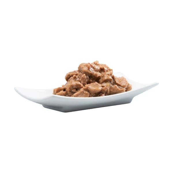 Gans 35 % (bestehend aus Muskelfleisch, Hals, Magen und Leber), Pute 33 % (bestehend aus Muskelfleisch, Herz und Leber), Gänse- und Putensud 27,2 %, Brokkoli 2 %, Birne 2 %, Mineralstoffe 0,5 %, Hanföl 0,2 %, Ringelblume 0,1 %