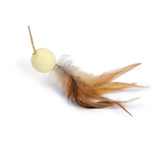 Der Designed by Lotte Holz-Kratzball Wiggly ist ein echtes Designelement für das Zuhause von Katzenbesitzern und bietet Stubentigern viel Kratzvergnügen und zugleich Spielspaß. Wiggly besteht aus Rubberwood, das einen schönen, hellen Farbton hat. Der Ball ist mit robustem Juteseil umwickelt. Ganz oben ist ein Spielelement mit einer Kugel und Federn angebracht. Sobald sich die Katze auf die Jagd nach den Federn macht oder beginnt am Ball zu kratzen, wackelt der Ball hin und her. Das animiert die Katze zu weiteren Aktionen und garantiert eine lustige Unterhaltung. Und weil der Ball in der Wohnung einfach fantastisch aussieht, machen Katzenbesitzer mit diesem Kratzball nicht nur ihrem Vierbeiner eine Freude, sondern auch sich selbst!