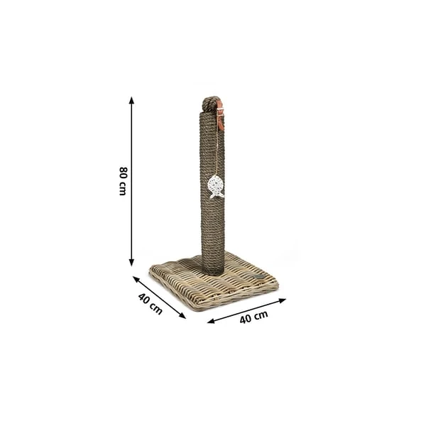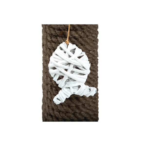 Der Designed by Lotte Kratzpfosten Kubu ist ein stylischer Kratzbaum, der sich sehr geschickt in jede Einrichtung einfügt. Die Säule ist mit Schiffstau-Material aus Sisal umwickelt, um für die nötige Kratzgelegenheit zu sorgen. Ein Lederstreifen mit einem Spielzeugfisch ist am oberen Ende befestigt. Der Fisch wird zu einem lustigen Spielgefährten deiner Katze und sorgt für noch mehr Spielspaß. Der Standfuß aus Rattan komplettiert die rustikale Optik.