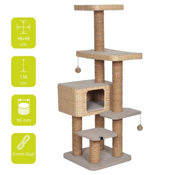 Er Bietet auch eine Rückzugsmöglichkeit für das Wohlbefinden sensibler Katzen. Nicht nur ein toller Ort um die Krallen auf Vordermann zu bringen, sondern auch zum Klettern und Spielen. Mit mehreren Etagen zum Klettern ist der Kratzbaum bestens ausgestattet. Mach deiner Katze eine Freude – mit dem Kratzbaum von Europet Bernina!