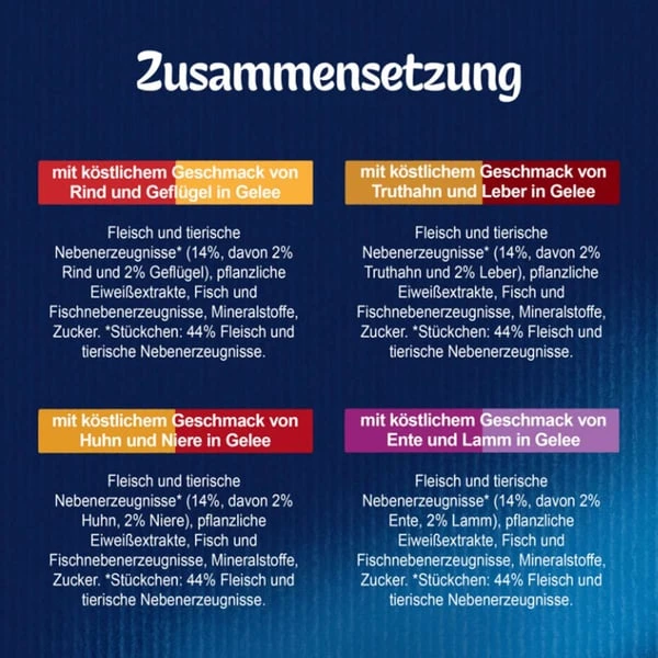 *Stückchen: 44% Fleisch und tierische Nebenerzeugnisse.