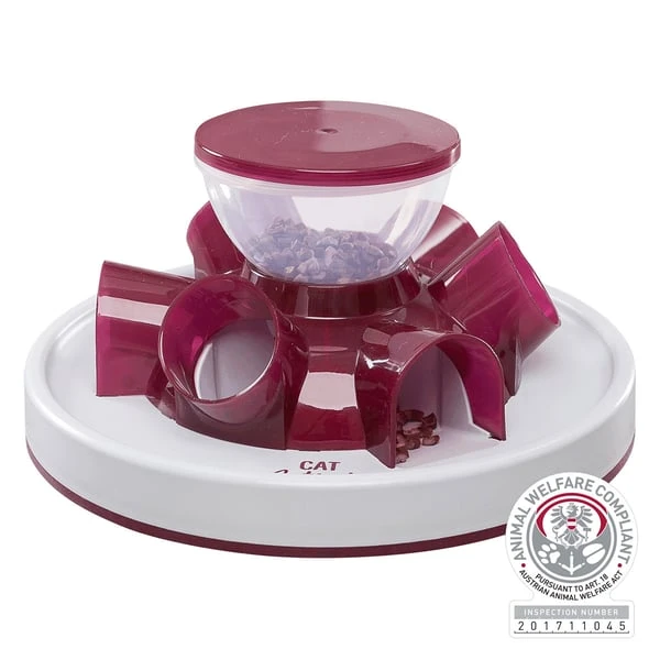 Jetzt wird das Füttern Ihrer Katze mit Leckerchen oder Trockenfutter noch spannender. Das Futter fällt aus einem Behälter in verschiedene Röhren; die Ausgabemenge ist dabei regulierbar. Das Strategiespiel ist für alle Katzen ab 3 Monaten geeignet. Spaß ist garantiert. Das Spielzeug ist aus robustem Kunststoff gefertigt und kann in der Spülmaschine gereinigt werden.