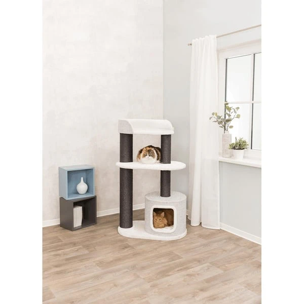 Mit dem Plüsch ist der Kratzbaum auch besonders kuschelig. Mit dem widerstandsfähigen Sisal trotzt der Kratzbaum auch ausdauerndem Kratzen. Polyester ist ein äußerst beständiges Material, so dass der Kratzbaum deiner Katze lange Freude bereiten wird. Er Bietet auch eine Rückzugsmöglichkeit für das Wohlbefinden sensibler Katzen. Hält auch großen und schweren Katzen mit der soliden Konstruktion problemlos stand. Auch dem Gewicht von mehreren Katzen hält er problemlos stand. Hier kann deine Katze nicht nur die Krallen wetzen, auch für viel Kletter-und Spielspaß ist gesorgt. Außerdem ist der Kratzbaum besonders für Senioren geeignet. Mach deiner Katze eine Freude – mit dem Kratzbaum von Trixie!