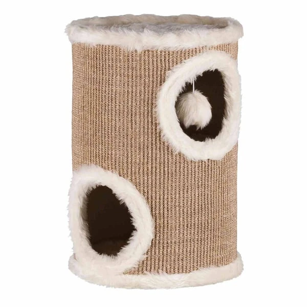 Besonders kuschelig ist die Kratztonne mit dem eingearbeiteten Plüsch. Mit dem Sisal ist die Kratztonne bestens für die Krallen deiner Katze gewappnet. Polyester ist sehr pflegeleicht und macht sich deswegen an der Kratztonne gut. Hier kann sich deine Katze nicht nur austoben, sondern auch zum Ausspannen zurückziehen. Auch großen und schweren Katzen hält die Kratztonne dank der stabilen Konstruktion stand. Besonders Kitten und junge Kätzchen werden mit der Kratztonne viel Spaß haben. Hier kann deine Katze nicht nur die Krallen wetzen, auch für viel Kletter-und Spielspaß ist gesorgt. Die Kratztonne ist besonders platzsparend auch in kleinen Räumen. Mit der Kratztonne von Trixie lässt du es deiner Katze gut gehen.