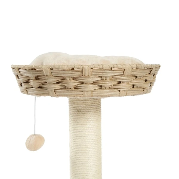 Der ZooRoyal Kratzbaum Karla ist ein kompakter, schöner Kratzbaum im natürlichen Look, der deinen Haustiger mit vielfältigen Möglichkeiten zum Klettern, Spielen, Kratzen, Beobachten und Schlafen begeistern wird. Der cremefarbene Kratzstamm aus Sisal laden zum Krallenwetzen ein. Danach kann deine Katze mit dem Spielzeug Ball am Seil spielen und sich anschließend auf dem Liegenest ausruhen. Das Liegenest enthält zudem ein herausnehmbares und maschinenwaschbares Kissen.