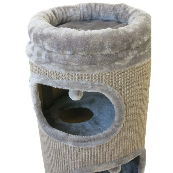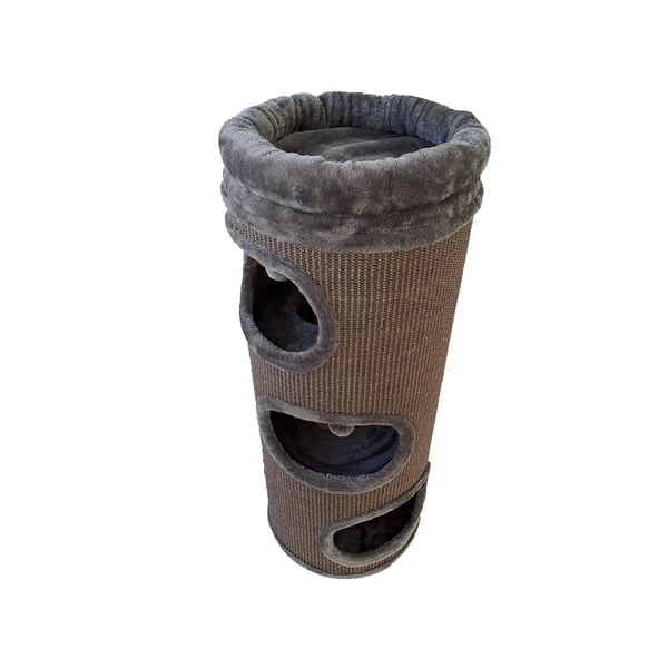 Die stabile und schöne Kratztonne Sami ist erhältlich in den Farben beige/ creme und grau. Das abnehmbare gepolsterte Kuschelnest auf der obersten Etage bietet einen idealen Liegeplatz zum beobachten und dösen. Sie hat 3 Höhlen, in die sich dein Stubentiger zurückziehen kann. Alle Höhlen sind durch innere Durchgänge miteinander verbunden. Für ordentlich Kratzspaß sorgt die große Kratzfläche aus natürlichem Sisal. Hier kann deine Katze ihrem natürlichen Kratzbedürfnis nachgehen.